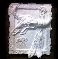 These are hand sculpted paper. I use archival quality paper fiber and hand detail each piece. The marbleing effect is created using graphite powders. They are each professionally framed in a shadow box to preserve their beautiful but fragile state.