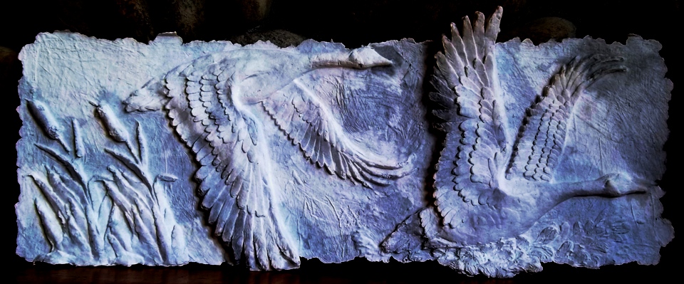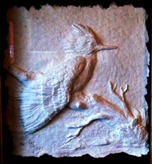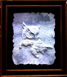 These are hand sculpted paper. I use archival quality paper fiber and hand detail each piece. The marbleing effect is created using graphite powders. They are each professionally framed in a shadow box to preserve their beautiful but fragile state.